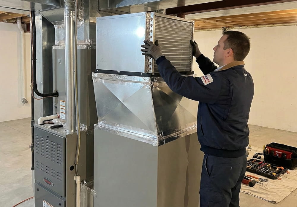 A Hybrid Dual-Fuel System pairs a high-efficiency electric heat pump with your existing gas furnace. Save up to 50% on your heating bills without sacrificing winter peace of mind.